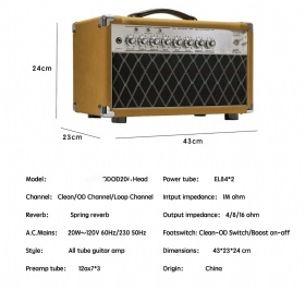 Custom Grand Amplifier Dumble Clone ODR Overdrive Reverb Head 20W with Two Channels Clean and Overdrive, Preamp 12ax7/3 Power Tubes EL84/2 JJ Tubes Product No.:ODR20BR Online Inquiry Details Custom Grand Amplifier Dumble Clone ODR Overdrive Reverb 20W with Two Channels Clean and Overdrive, Preamp 12ax7/3 Power Tubes EL84/2 JJ Tubes Previous Product:HOT Sales! Custom Dumble Clone Handwired Overdrive Special Reverb 20 Watt 1x12 Combo Purple Suede 2 X EL84 3 X 12ax7 JJ Tubes Next Product:Custom 100-Watt Plexi1959 Amp Head with Send Return Loop PPMIV in White JJ Valve Related Products Dumble Clone Steel String Singer Head 20W with Kinds Colors, Grand Amplifier SSS Model 5E3 Fender Style Hand Wired Amp Chassis Custom Grand HIWATT Replica HW DR504 Custom 50 Watt Guitar Amplifier Head JJ Tubes 12AX7*3, 12AT7*1, EL34*2