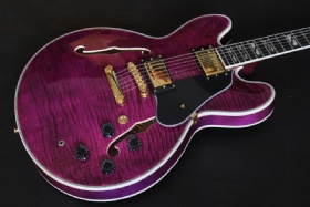 F hollow body jazz electric guitar, purple tiger flame top gitaar, mahogany guitar